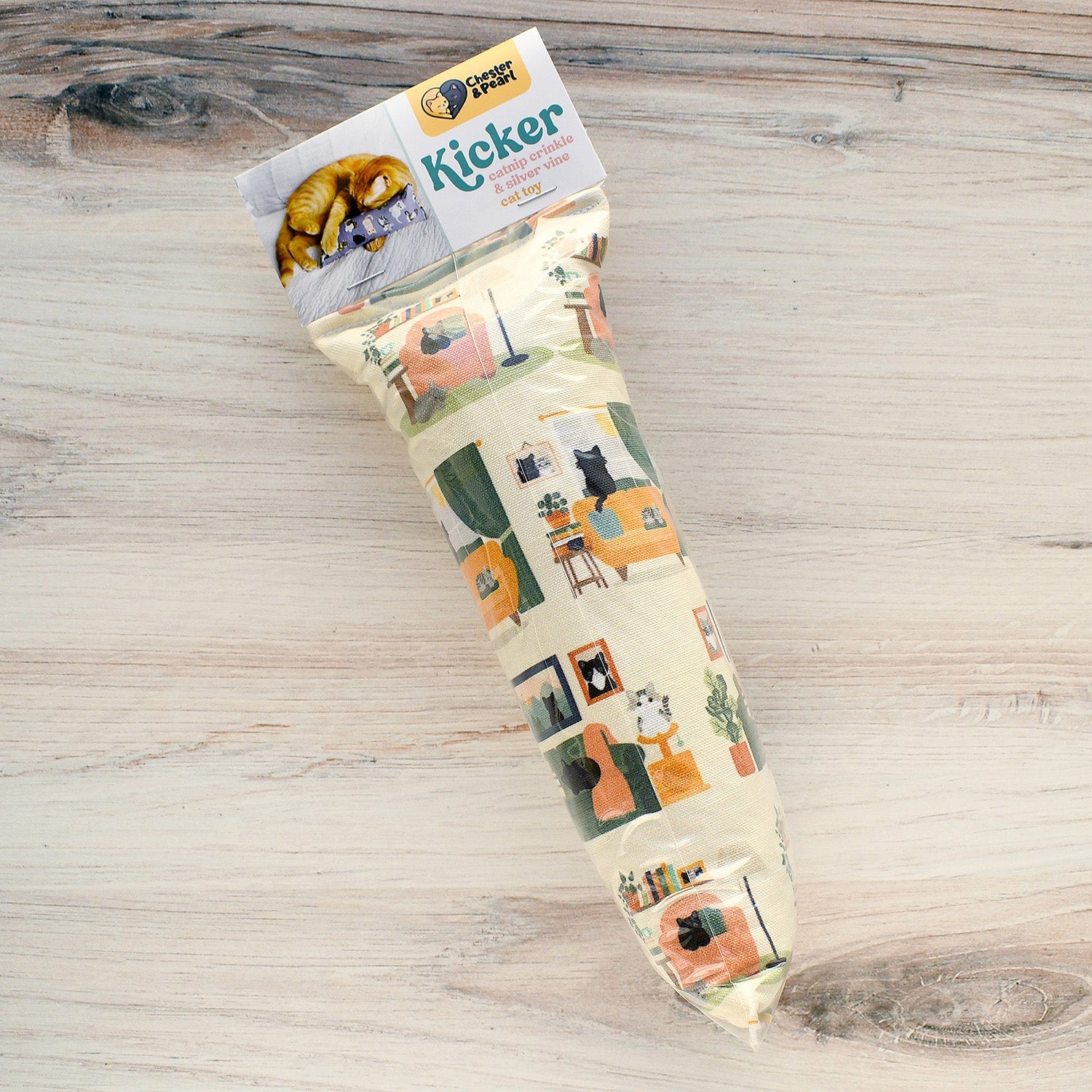 The cat kicker toy is made from a durable canvas material that’s tough enough to withstand those clawed kicks and won’t immediately fall apart.
