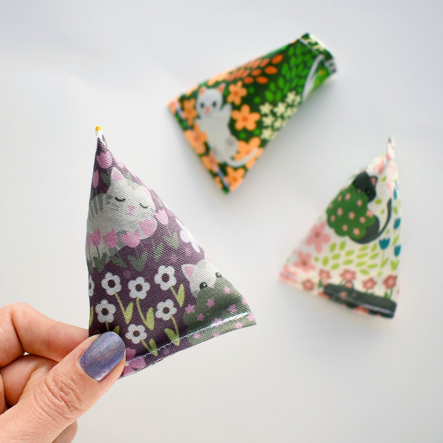 Pouncers cat toys are made from durable canvas fabric that won’t immediately fall apart. A spoonful of catnip and silver vine inside is attractive to more cats than just plain catnip. Loud crinkle material acts on another of your kitty’s senses. And a little poly fill combined with the Pouncer’s offset design always keeps this toy landing upright and ready for the next pounce.