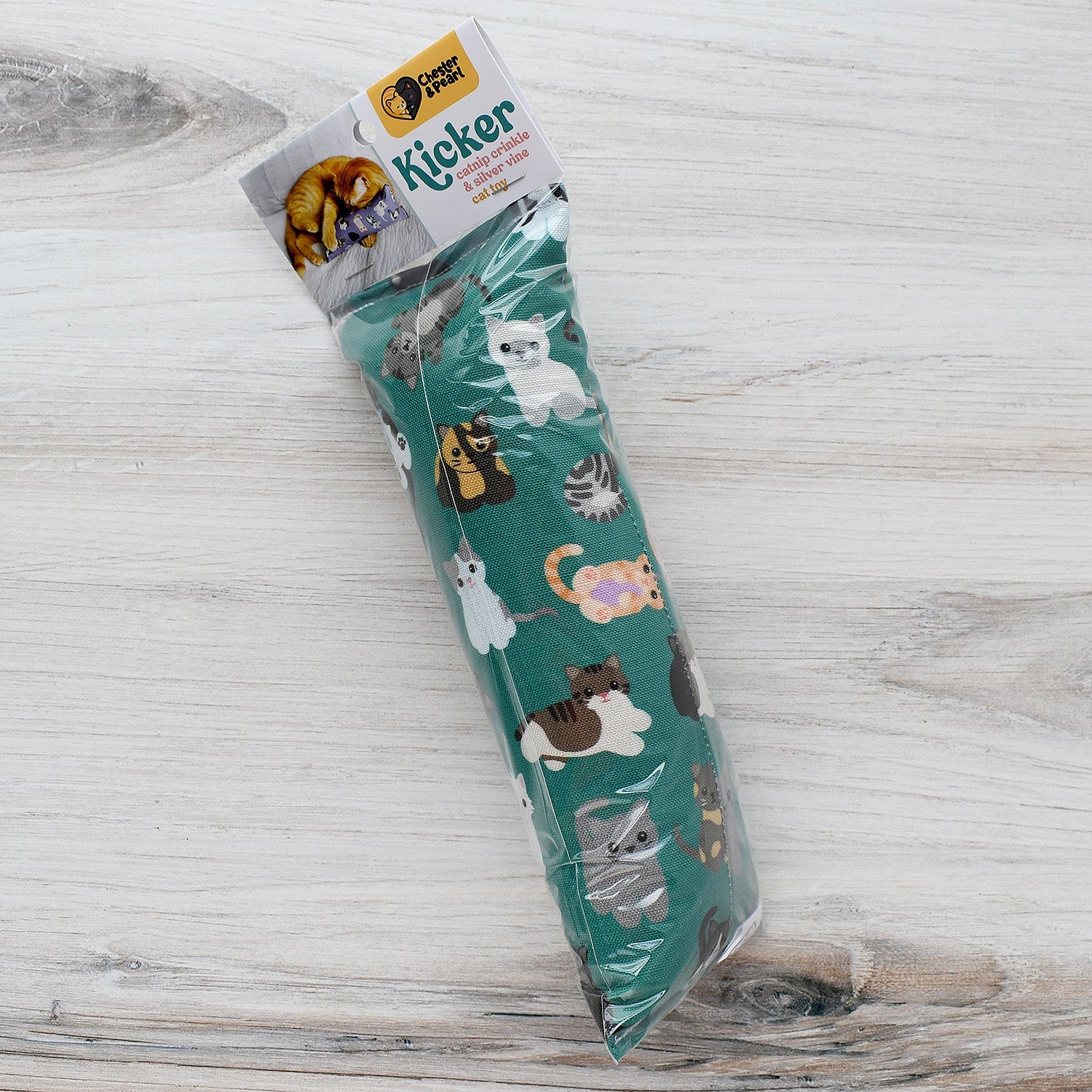 This jade green Kicker cat toy is an ideal diversion for your little predator's natural hunting instincts. An irresistible Kicker will keep your arms scratch-free while they kick away at their "prey!"