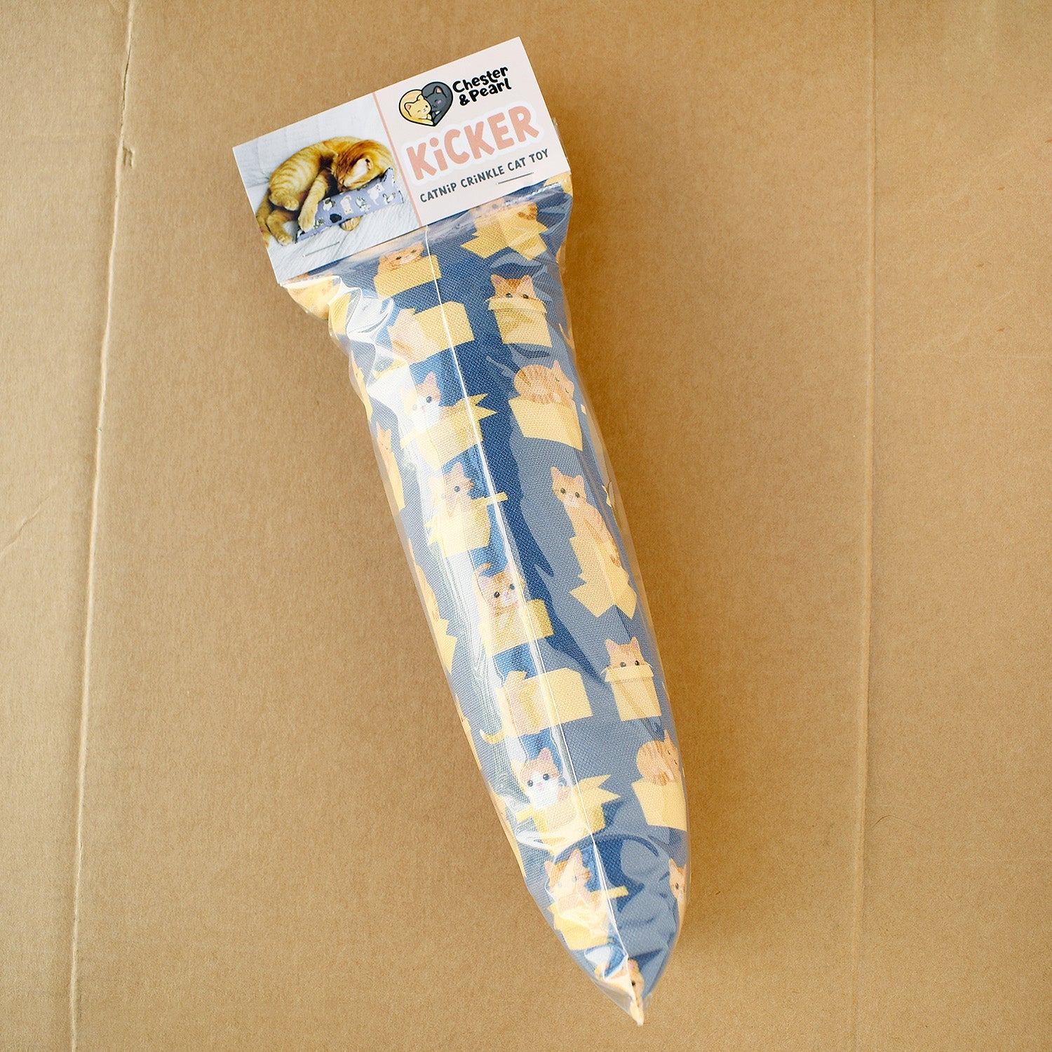 Orange Cats in Boxes Kicker Cat Toy - Blue