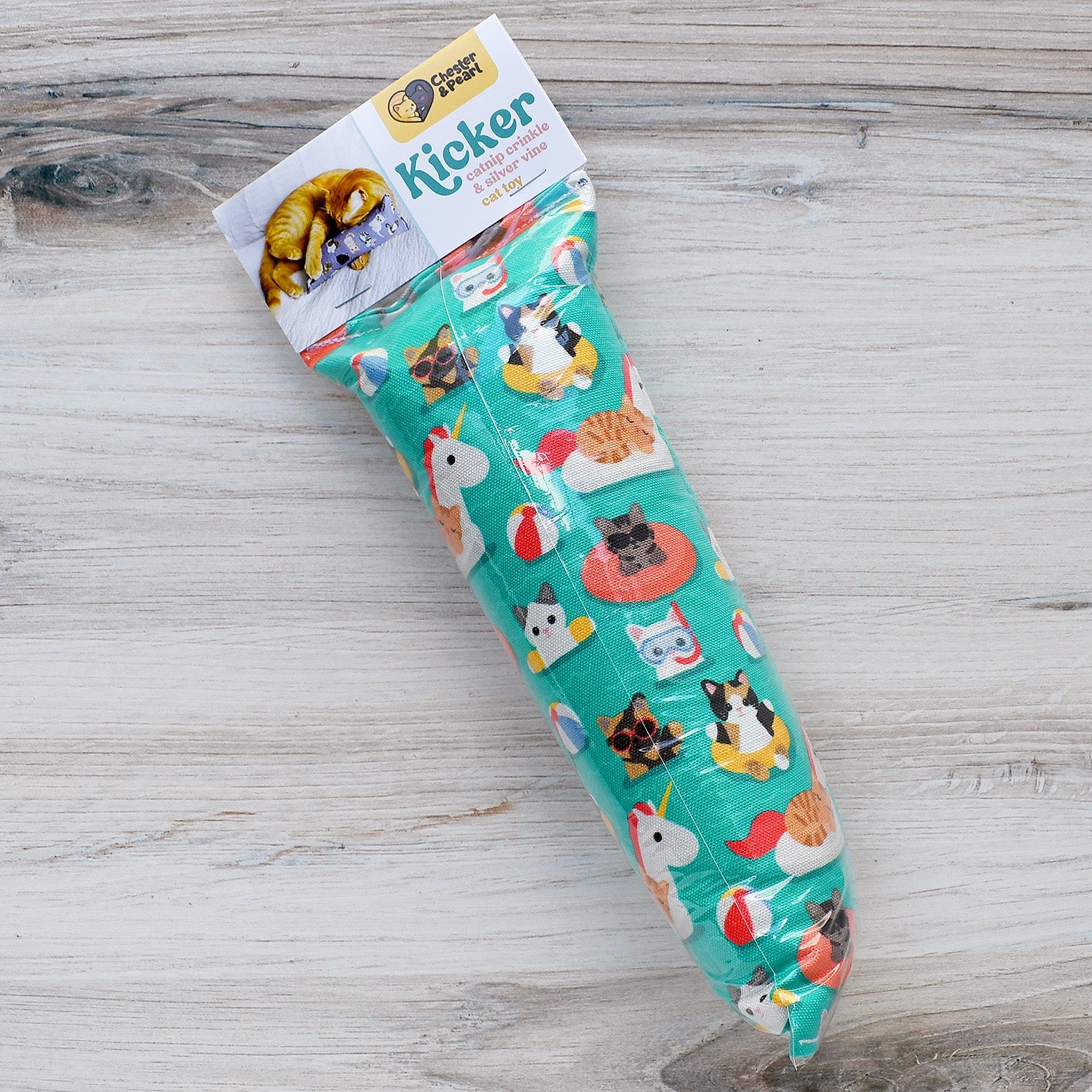 The cat kicker toy is made from a durable canvas material that’s tough enough to withstand those clawed kicks and won’t immediately fall apart.