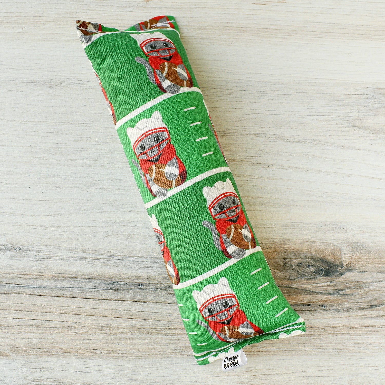 The cat kicker toy is made from a durable canvas material that’s tough enough to withstand those clawed kicks and won’t immediately fall apart.