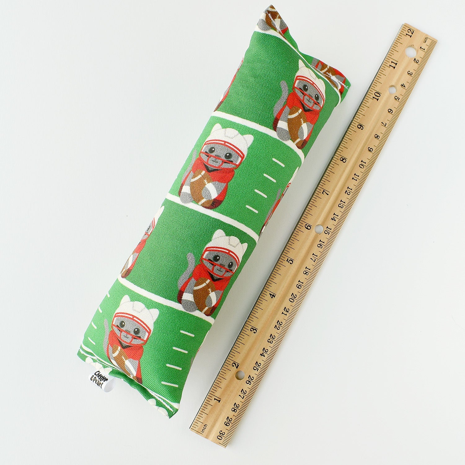 This Kicker cat toy measures approximately 3x10” (7.5x25cm).